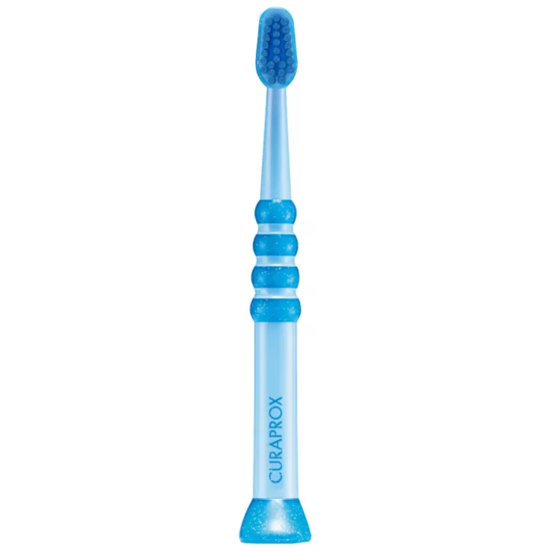 Професор доктор Адріан Люссі розробив цю зубну щітку спеціально для немовлят і маленьких дітей. Компактна голівка легко добирається до кожного зуба, жоден не залишається без уваги. Усе це без шкоди для чутливих слизових оболонок, оскільки голівка вкрита м'якою гумою.